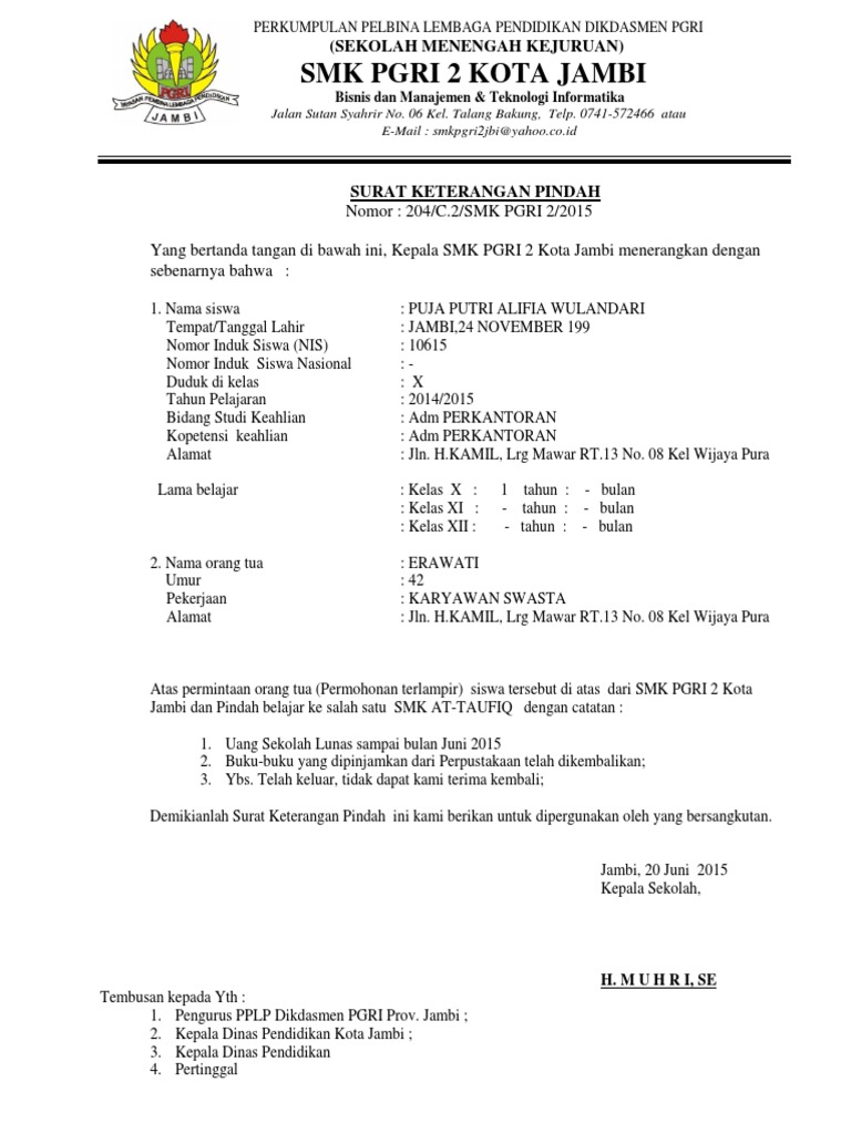 Contoh Surat Keterangan Pindah Induk - Contoh Surat Keterangan Pindah Sekolah Induk / Kemungkinan jenis surat permohonan yang akan kamu buat atau kamu urus berbeda, tapi tidak usah bingung, kamu cukup menyesuaikannya dengan contoh yang kami berikan di atas.. Menerbitkan kartu npwp, paling lama 1 (satu) hari kerja setelah surat pindah diterima kpp baru; Itulah beberapa contoh surat permohonan untuk berbagai kepentingan yang dapat kamu jadikan rujukan dalam membuat surat permohonan. Fakta ini biasanya diisi dengan data sesuai permintaan dari orang yang meminta surat rekomendasi tersebut. Kemungkinan jenis surat permohonan yang akan kamu buat atau kamu urus berbeda, tapi tidak usah bingung, kamu cukup menyesuaikannya dengan contoh yang kami berikan di atas. Berdasarkan tembusan surat pindah dari kpp lama sebagaimana dimaksud dalam pasal 20 ayat (5) dan pasal 21 ayat (2), kepala kpp baru: